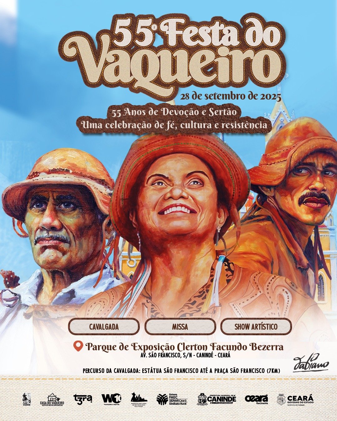 O sertão vai se encher de fé, tradição e aboio! No dia 28 de setembro de 2025, Canindé será palco de uma das maiores manifestações culturais e religiosas do Nordeste: a 55ª Festa do Vaqueiro – Cavalgada e Missa do Vaqueiro.