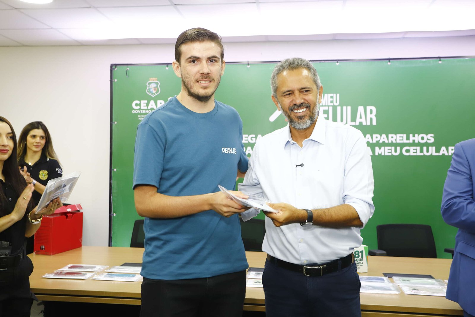 O Governo do Ceará chega à marca de mais de 13 mil celulares recuperados pelas Forças de Segurança do Estado desde o lançamento do programa Meu Celular, em 2024. Nesta terça-feira-feira (3), um novo lote, com cerca de 1.200 aparelhos, começou a ser entregue aos proprietários no Centro Integrado de Segurança Pública (Cisp), em Fortaleza. A ação foi conduzida pelo governador Elmano de Freitas, acompanhado do secretário da Segurança Pública e Defesa Social, Roberto Sá; do delegado-geral da Polícia Civil do Ceará, Márcio Gutiérrez; do comandante-geral da PMCE, coronel Sinval Sampaio; entre outras autoridades.