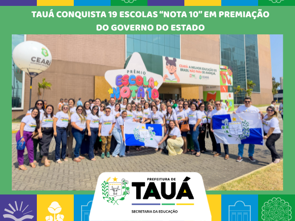 O município de Tauá foi destaque na 14ª edição do Prêmio Escola Nota 10, realizada nesta segunda-feira, 15/09, pelo Governo do Estado do Ceará, no Centro de Eventos, em Fortaleza. Nosso município conquistou 19 escolas certificadas como “Nota 10”, sendo 09 delas premiadas pela excelente proficiência de aprendizagem alcançada pelos estudantes no SPAECE 2024 (Sistema Permanente de Avaliação da Educação Básica do Ceará).